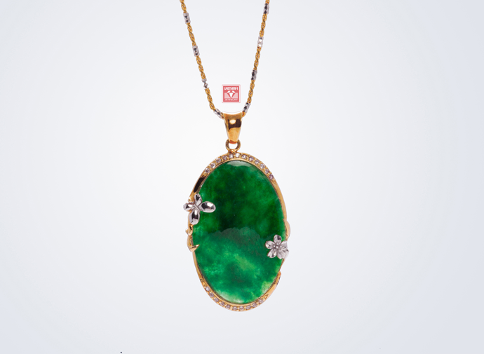 Chất liệu vàng 14K gắn đá chủ Ngọc tự nhiên .