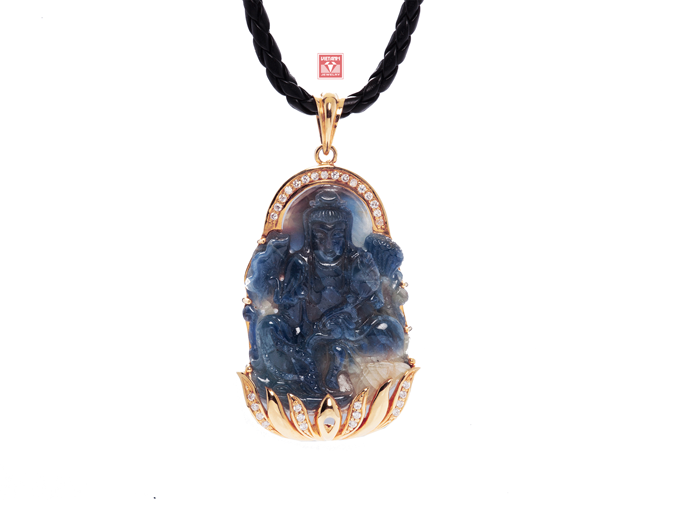 Chất liệu vàng 14K gắn đá chủ Saphia xanh tự nhiên .