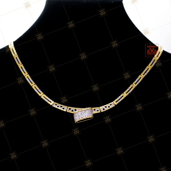 Chất liệu vàng 14K, vàng 2 màu. Hàng nhập khẩu.