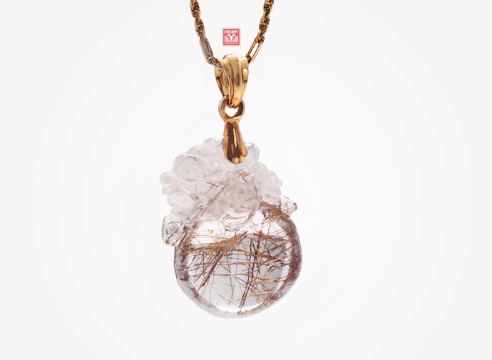 Chất liệu vàng 14K gắn đá chủ Thạch Anh tóc.