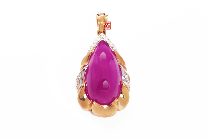 Chất liệu vàng 14K gắn đá chủ Ruby tự nhiên.