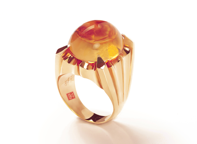Chất liệu vàng 14K gắn đá chủ Thạch Anh vàng.