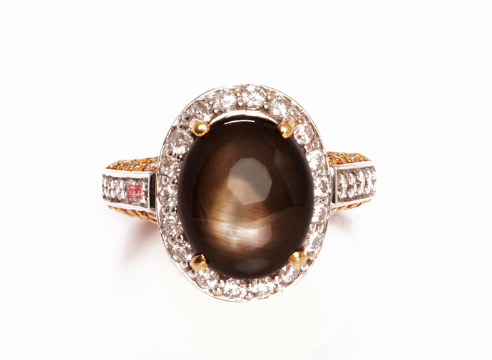 Chất liệu vàng 14K gắn đá chủ Saphia tự nhiên.